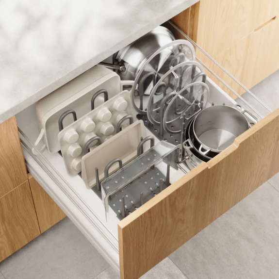 - Kiler / Mutfak: Tel raflar idealdir; hava sirkülasyonuna izin verir ve dökülen maddelerin temizlenmesini kolaylaştırır. Küçük eşyalar için raf astarları ekleyin.